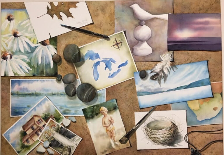 I am a compulsive watercolor artist…I love to get up close to nature. The weeds, the nests, the rocks and the feathers find me…. It is my goal to acknowledge them.