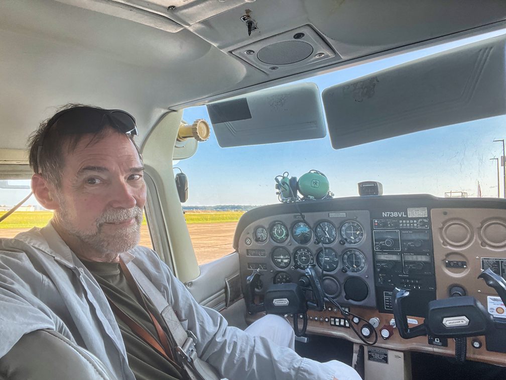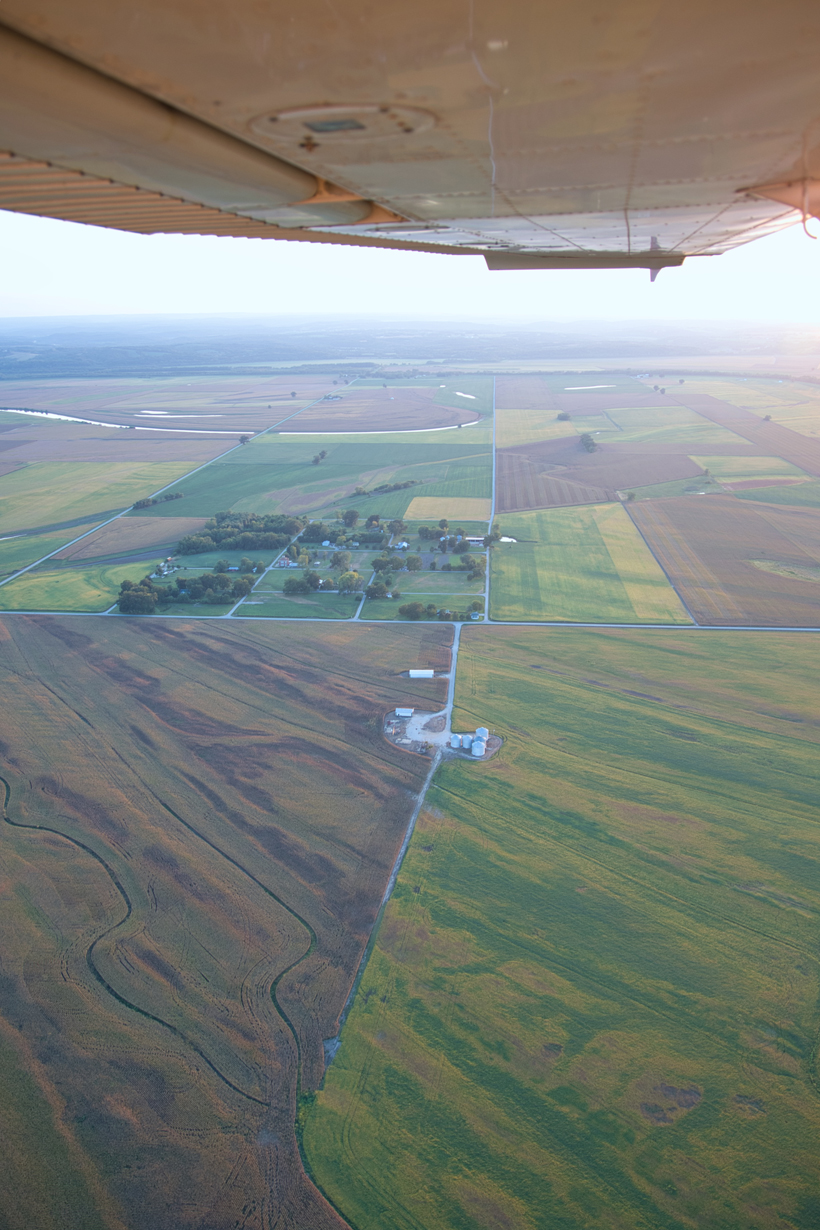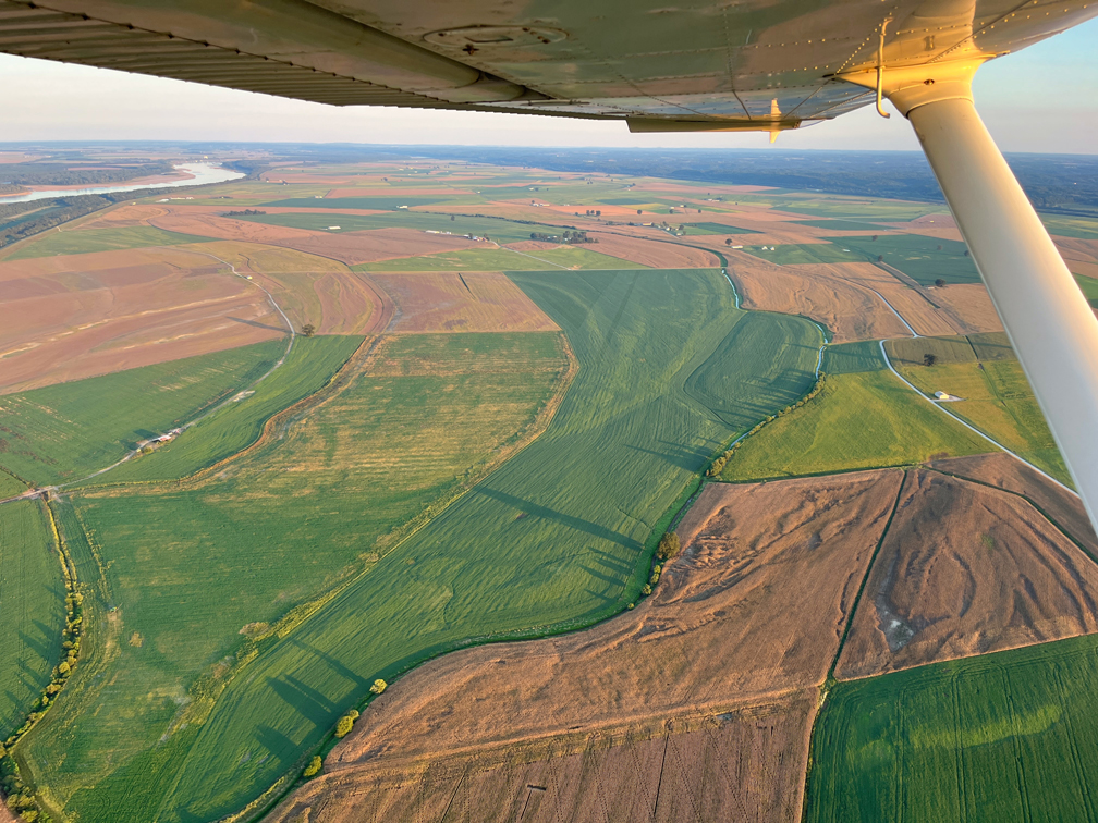 Greetings! My name is Erich Vieth and I am one of the lucky artists whose art work is on display at the newly renovated Silver Sycamore Gallery of Fine Art. Last Sunday I jumped at the invitation to join Gallery Co-Owner Leon Basler as he piloted his Cessna C-172N airplane over the gorgeous landscapes surrounding Ste. Genevieve.