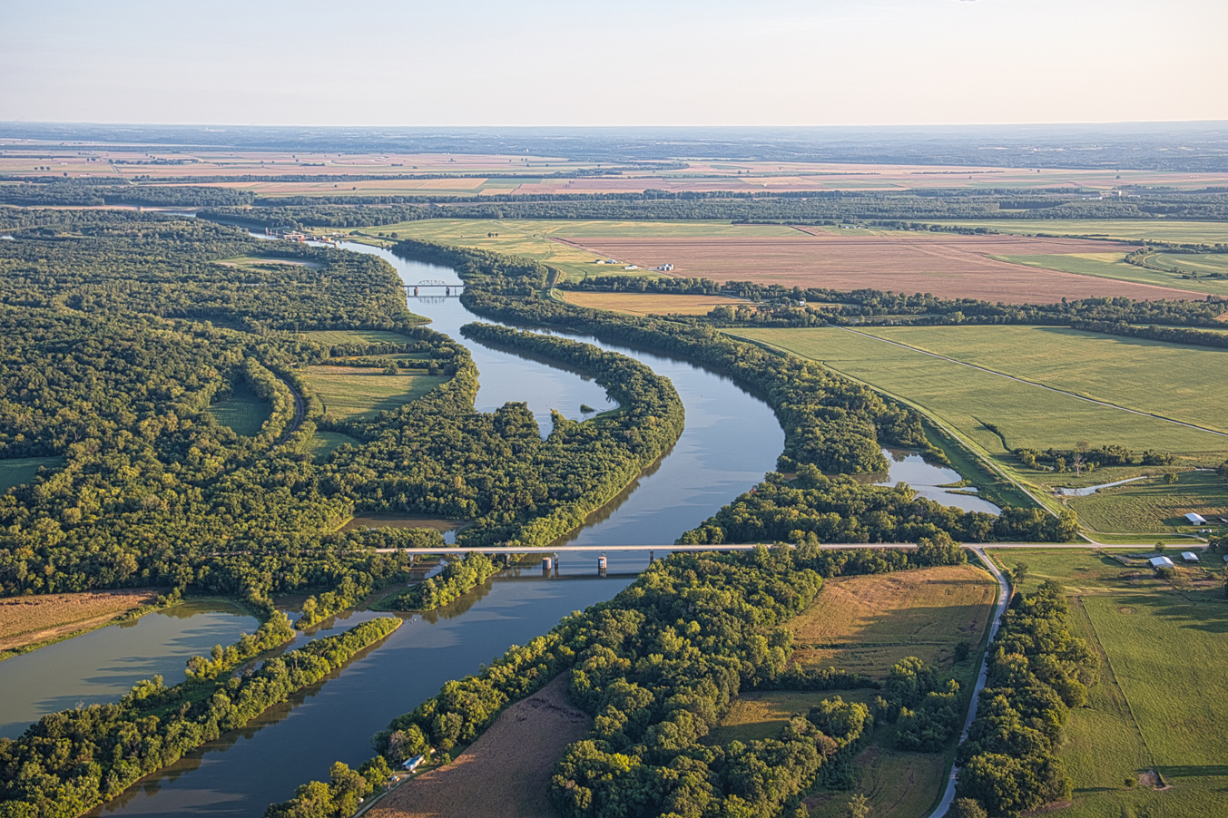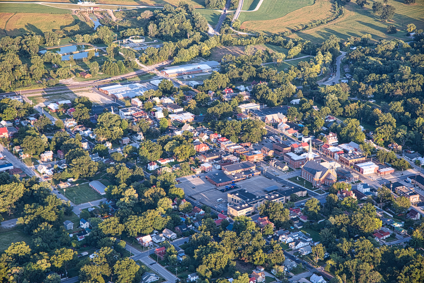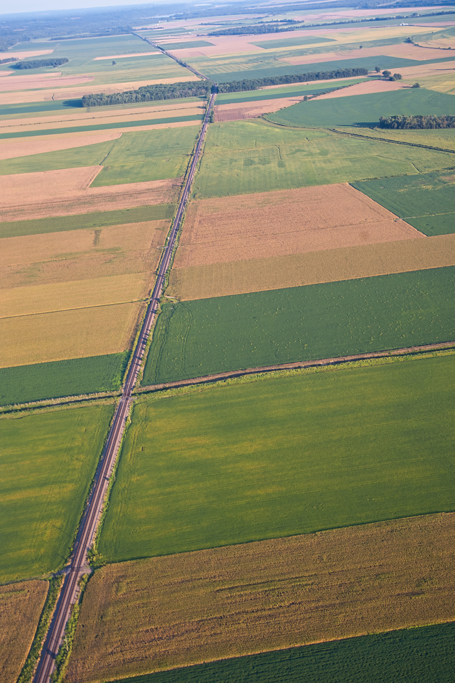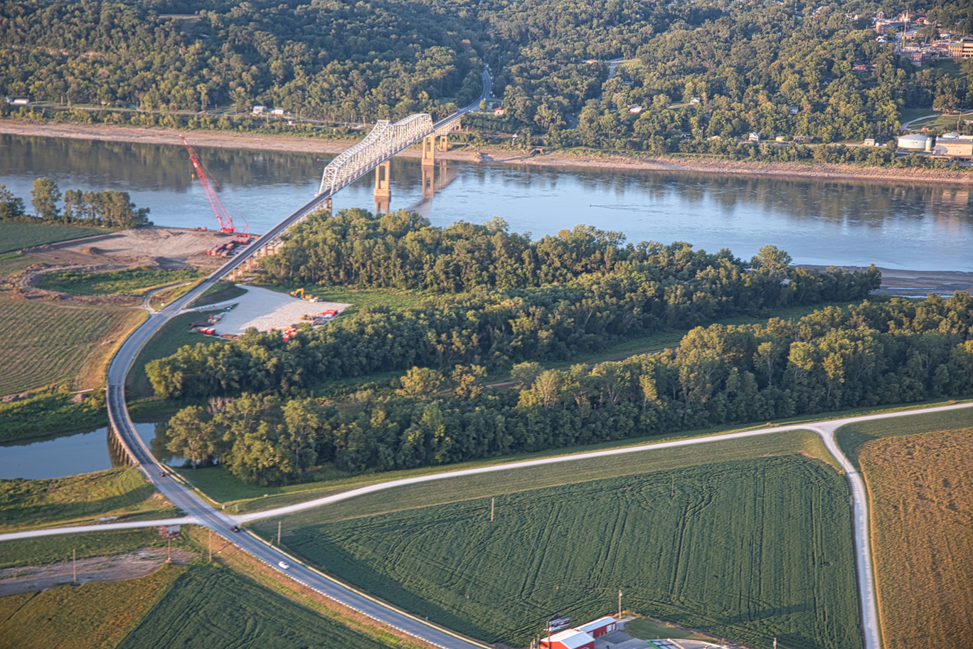 If you have never before seen Ste. Genevieve from the air, you are in for a treat. As you can see from these images, the shadows grew long and the vibrant landscape performed majestically. You’ll see about 30 photos in this clickable gallery, including rainbow hued farmland, city-scapes, the meandering Mississippi River (including bridges, a sand-dredging barge and the lock and dam).