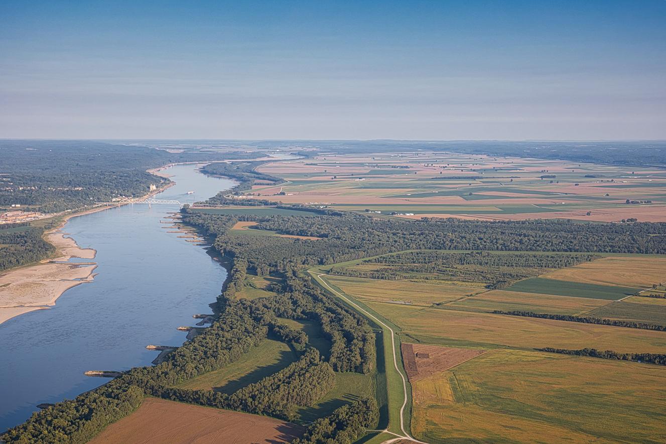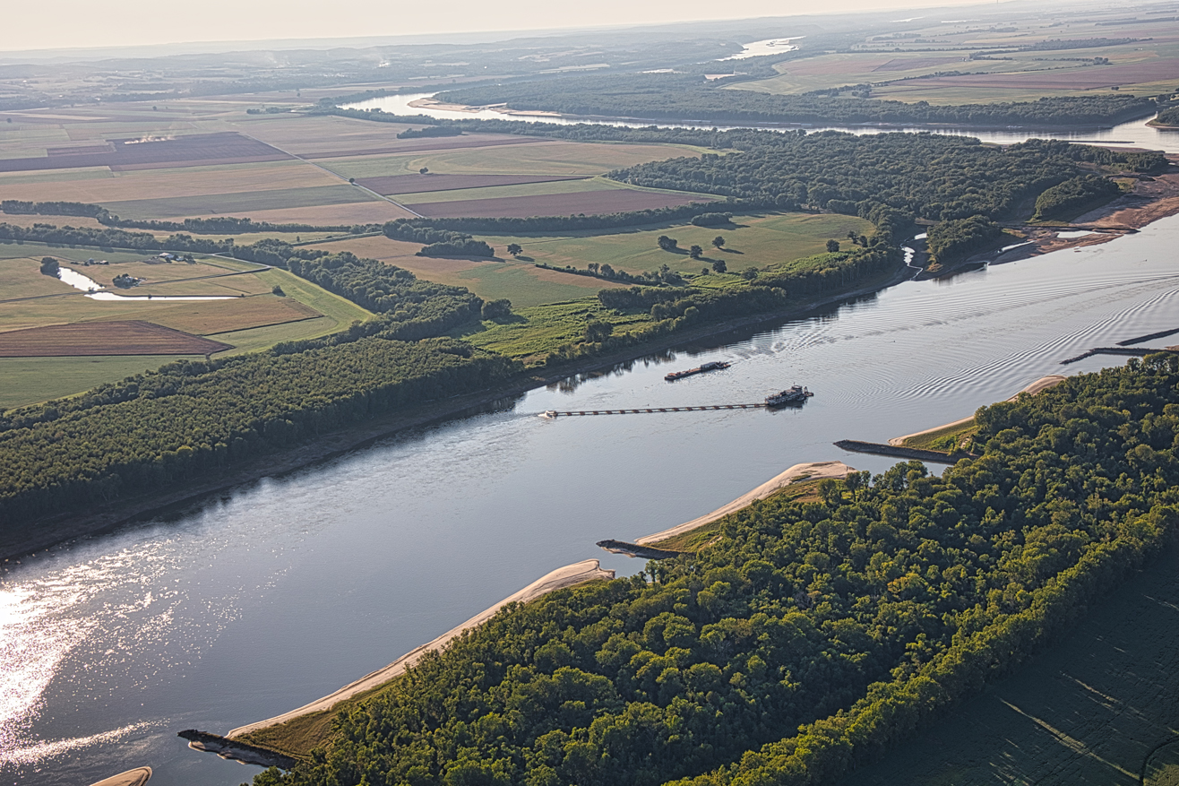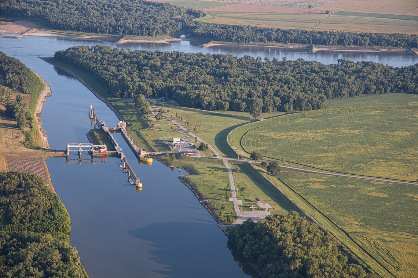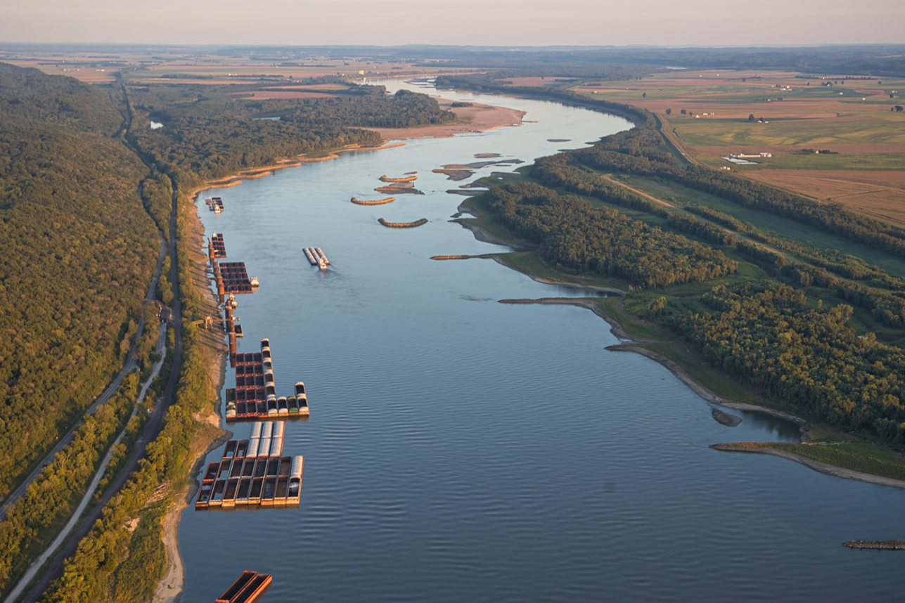 If you have never before seen Ste. Genevieve from the air, you are in for a treat. As you can see from these images, the shadows grew long and the vibrant landscape performed majestically. You’ll see about 30 photos in this clickable gallery, including rainbow hued farmland, city-scapes, the meandering Mississippi River (including bridges, a sand-dredging barge and the lock and dam).